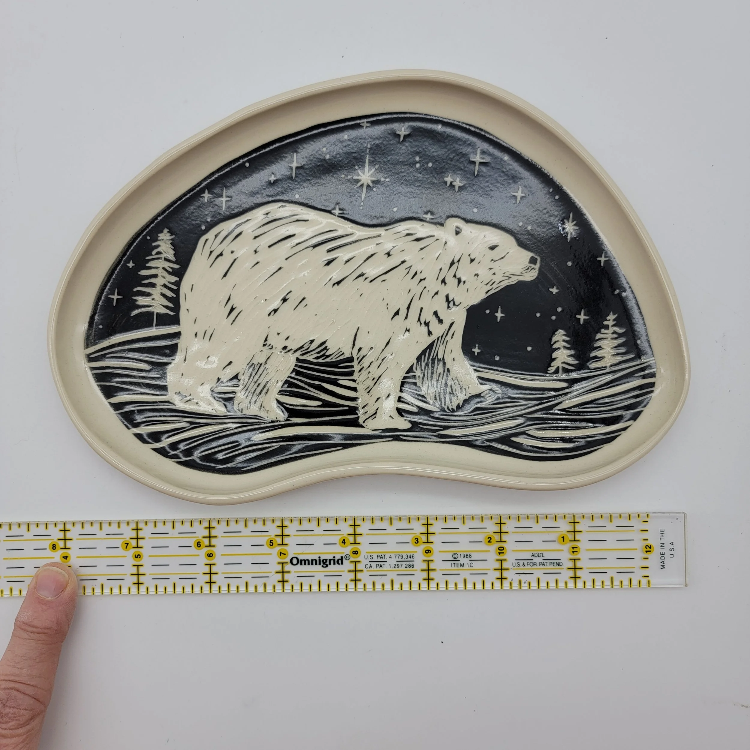 Each piece varies in size. This piece is approximately 6 1/2” diameter with a soft lip.