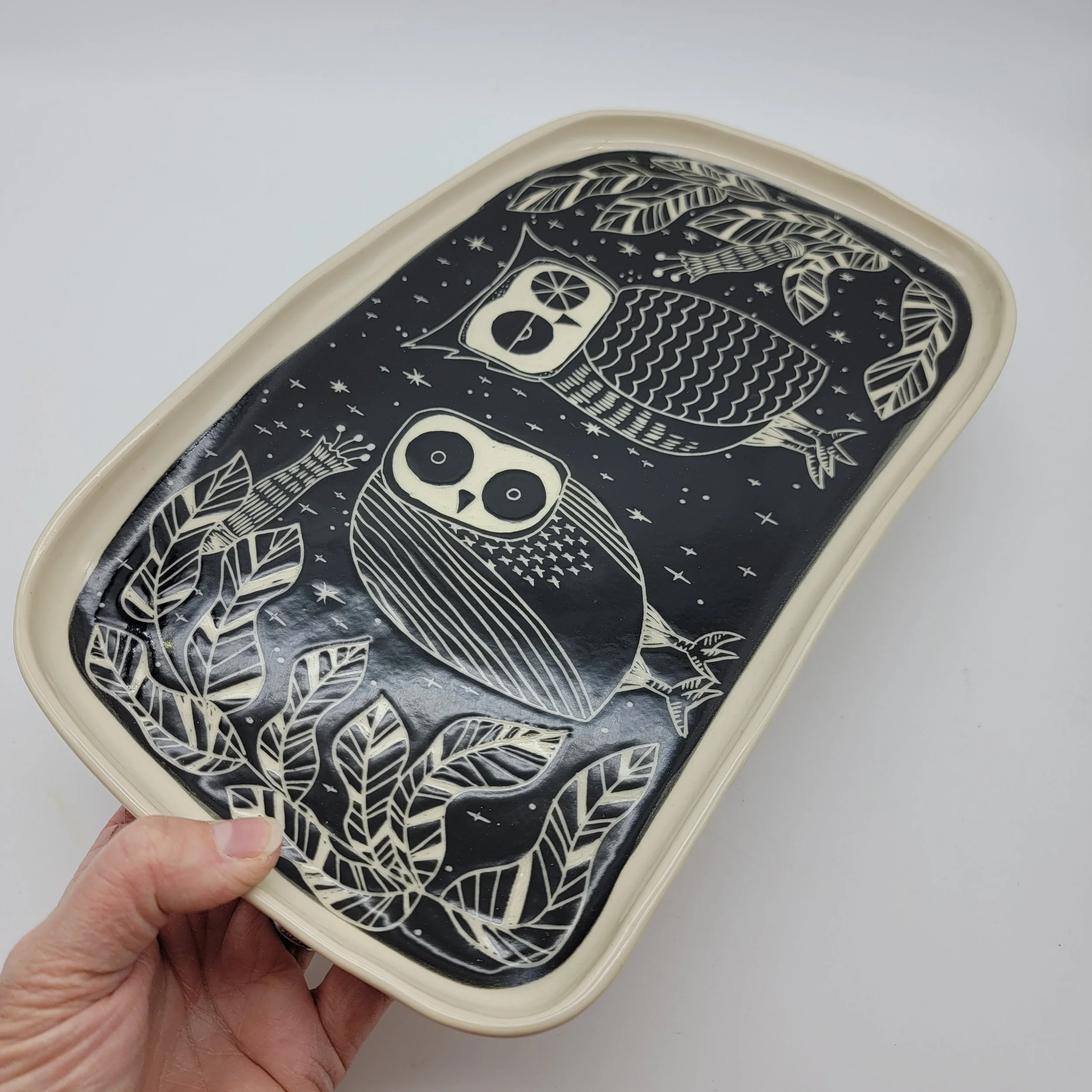 This small-batch handmade dish enhances any experience. Crafted from high-quality stoneware, its unique texture and natural variations make it one-of-a-kind. The colorful glazes complement various table settings. It's ideal for snacks, dips, spices, or jewelry. The gently raised edge keeps items in place while adding elegance. This functional yet artistic piece is a charming addition to your kitchen and home and a perfect gift for loved ones or your self.